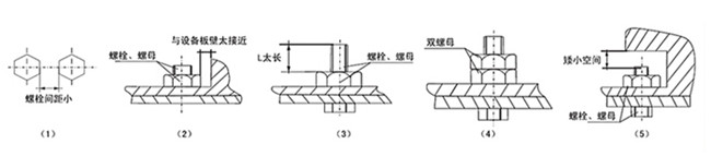 2、螺栓、螺母與設備板壁太近