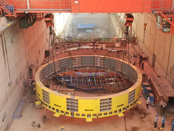 巴基斯坦卡洛特水電站首臺機定子機座順利吊裝