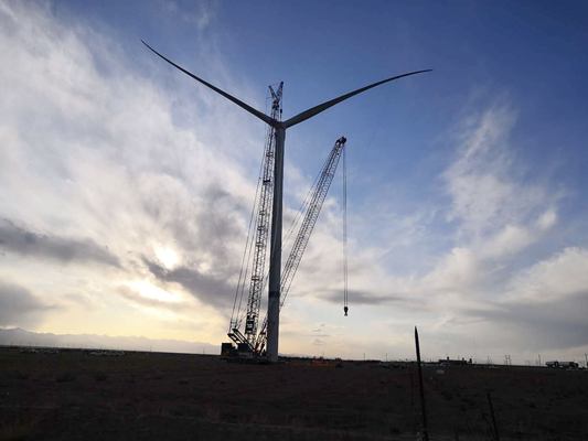 海南州一標段1000兆瓦風電場首臺風機的順利吊裝,標志著復工復產工作取得又一大勝利。工程建設分公司將繼續秉承“科學管理、真誠服務”的企業理念,向著投產發電的目標繼續邁進。