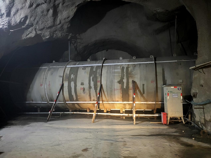 據悉,敦蓄電站1號引水洞高壓管道由上平段、上斜井、中平段、下斜井、下平段、鋼岔管及支管組成,立面上采取雙斜井布置,斜井傾角55°,鋼管直徑2.7~5.6米,壁厚18~66毫米,鋼板材質為500兆帕、600兆帕、和800兆帕。鋼管道長度達2080米,其中上斜井及彎段長420米,下斜井及彎段長467米。