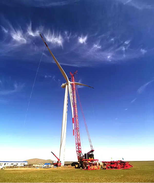 華能阿巴嘎旗17.5萬千瓦風電項目首臺風機吊裝完成。