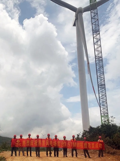 華南地區最大容量陸上機組完成吊裝