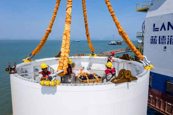 華電集團第一個海上風電項目首臺風機成功吊裝