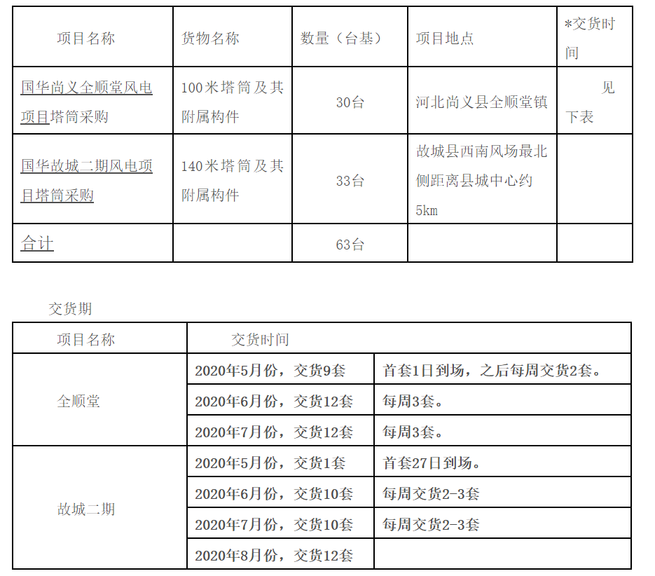 國華能源投資公司2019國華河北區域300MW風電項目塔筒采購公開招標