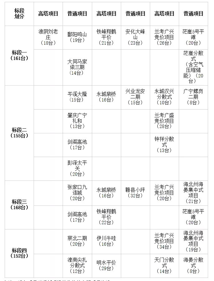 本項目劃分為4個標段,本次招標的為標段一,包括標段一的各項目風力發電機組及塔筒安裝等。
