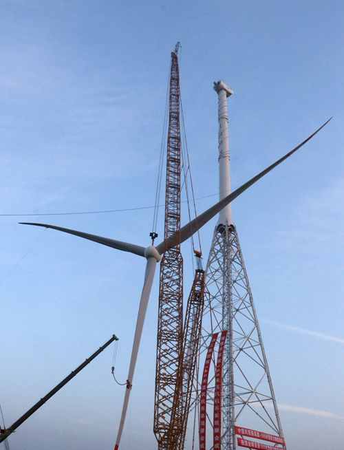 吊裝完成!全球首座160米預應力鋼管風塔落戶鄄城