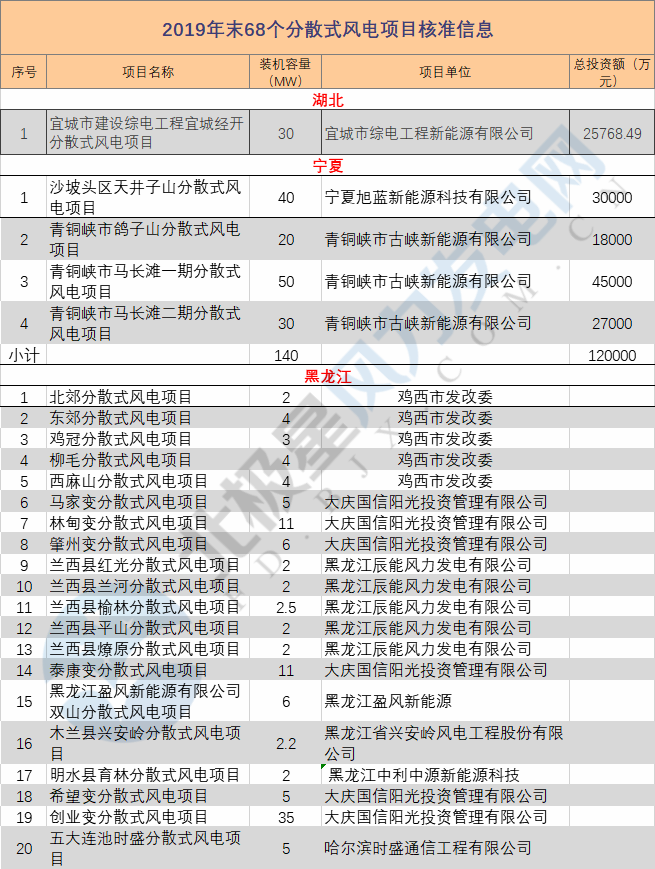 重磅!黑龍江、寧夏、湖北核準68個分散式風電項目 共計552MW(附清單)