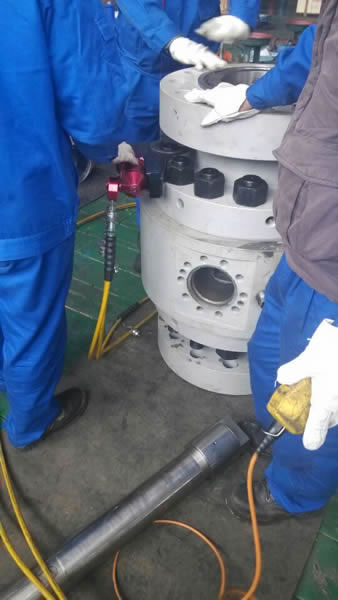 油田設備維護一般來說選擇液壓扳手類型以中空液壓扳手為主,因為中空液壓扳手整體設計比較薄,受到的工況限制少,可以使用的工況更多。再加上中空液壓扳手重量相對也較輕,工作頭直接套在螺栓上使用,很大程度上能較少工人師傅的勞動強度和手扶扳手的頻率,安全性也更高。因此,現場師傅們更愿意選擇中空液壓扳手。
